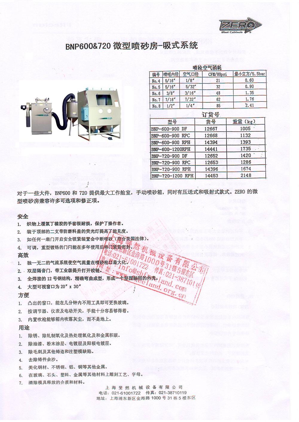 BNP 箱式喷砂机能提供高效而经济的磨料喷砂以达到表面清洁,去毛刺或表面粗细处理。 BNP 的大容积( 50 ″ x39 ″ x43 ″)使其能放置电动转盘, ZERO 的 A-300 自动化组件包和其他可选配项加上修改项。 |